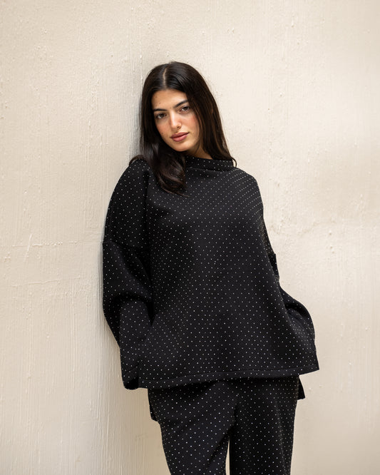 Women's Black Linen Suit with White Lines - Summer Ready Fashion Set - Made in Egypt