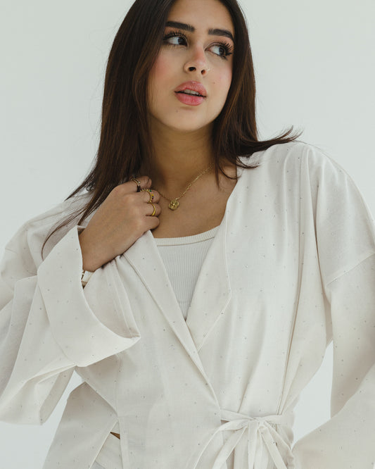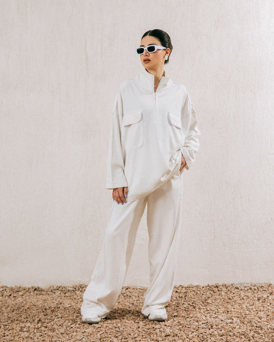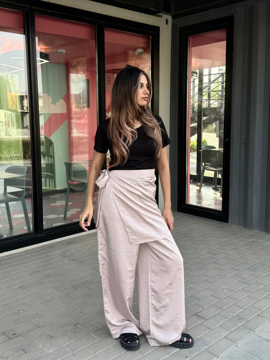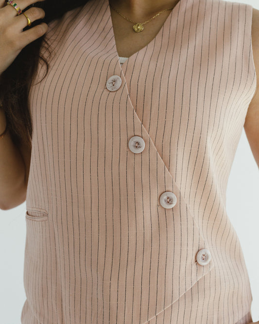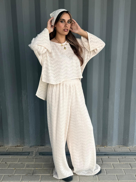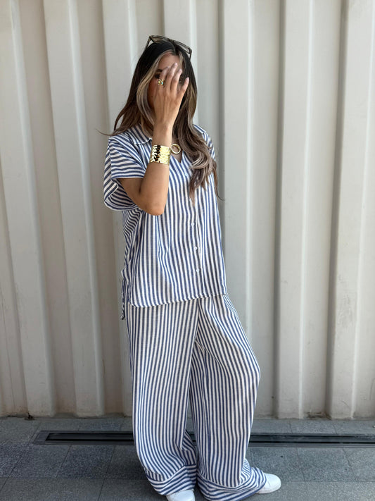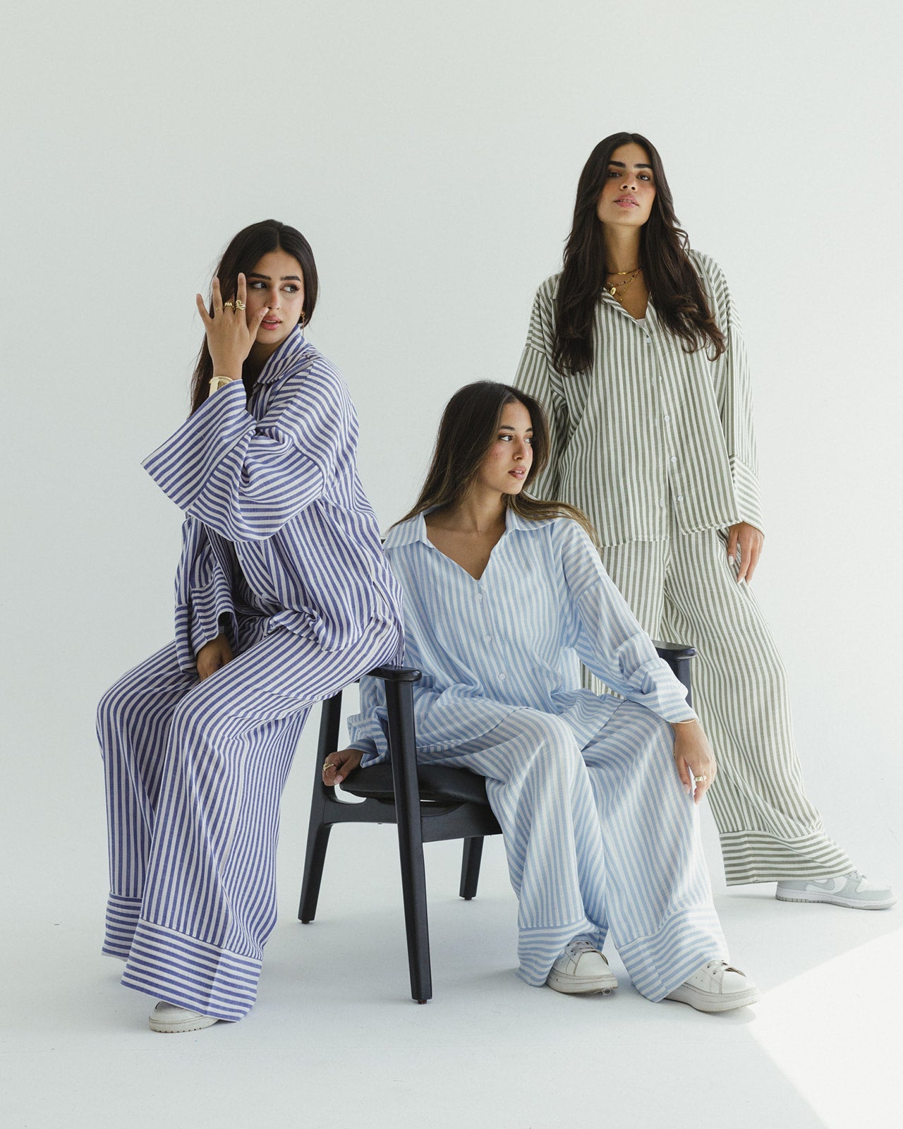 Women's Pure Linen Summer Suit Set - Beige with White Lines, Made in Egypt