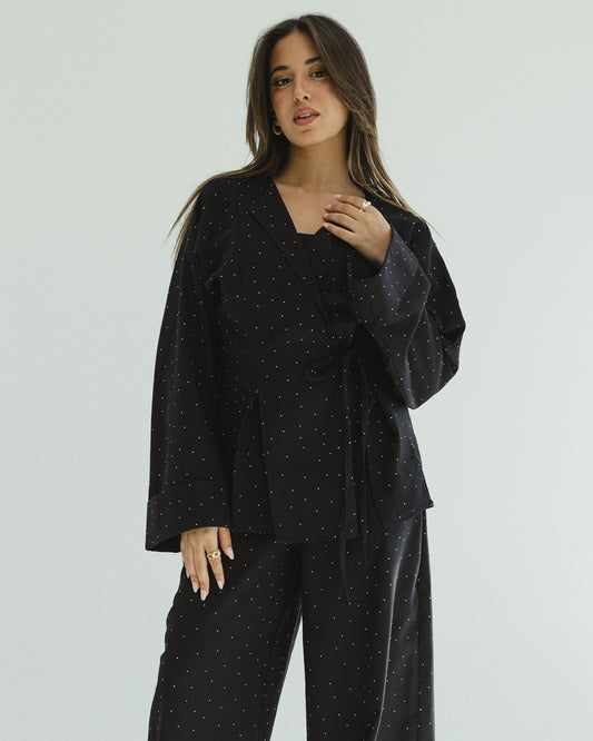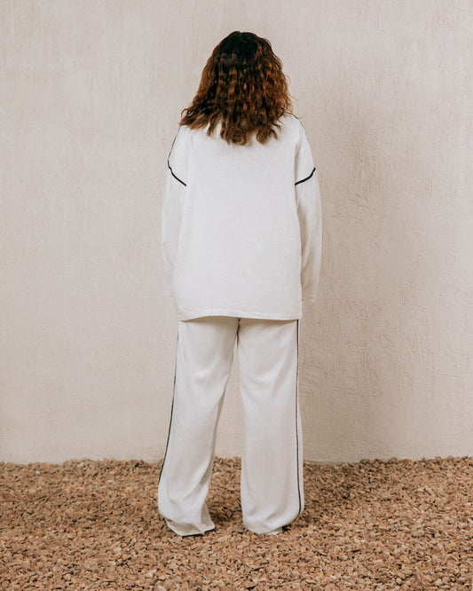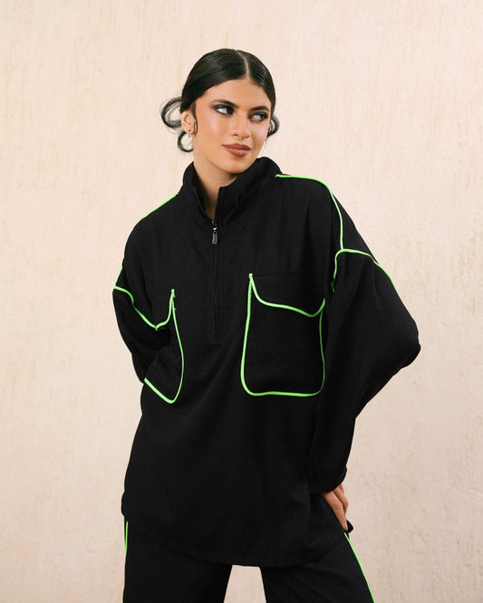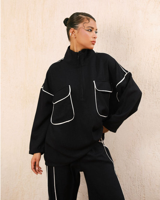 Women's Black Linen Suit with White Lines - Summer Ready Fashion Set - Made in Egypt