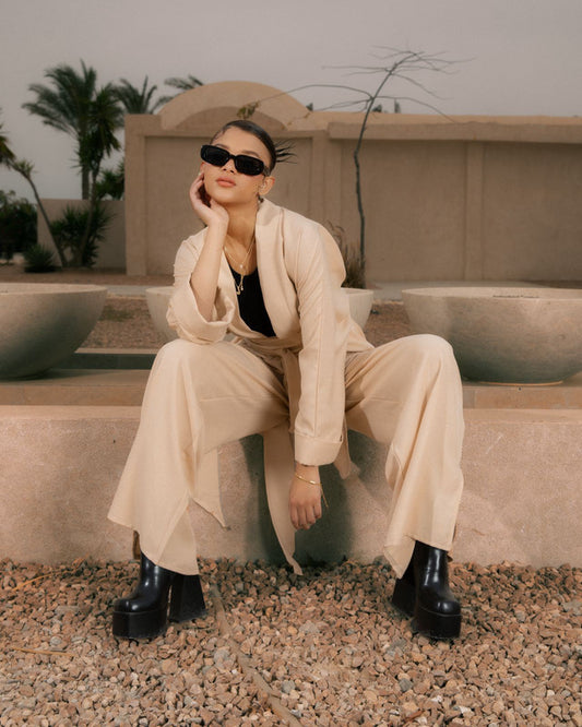 Sira Modest Set for Women - Pure Linen Fabric, Beige Color, Elegant & Comfortable, Made in Egypt
