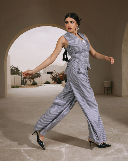 Women's Striped Vest Set - Grey | TR Fabric Blend of Rayon & Polyester | Stylish & Comfortable | Made in Egypt