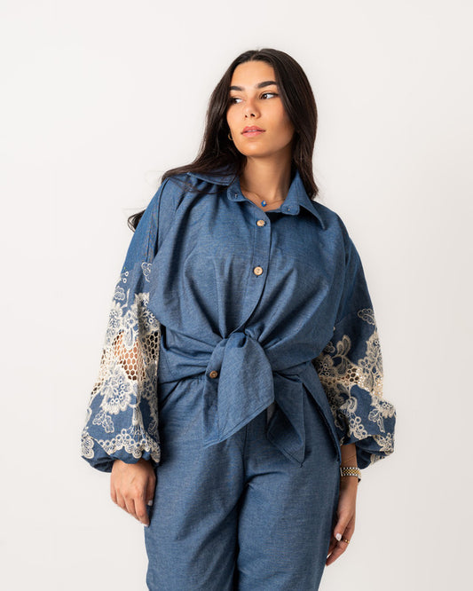 Women's Embroidered Denim Shirt Set - Stylish & Comfortable Egyptian Fabric