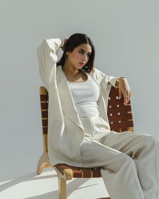 Cardigan Linen Beige Set