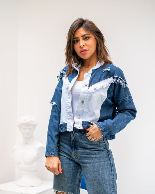 Women's V-Cut Denim Jacket - Stylish Casual Tops & Outerwear - Made in Egypt