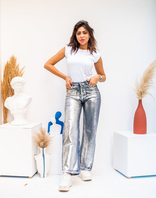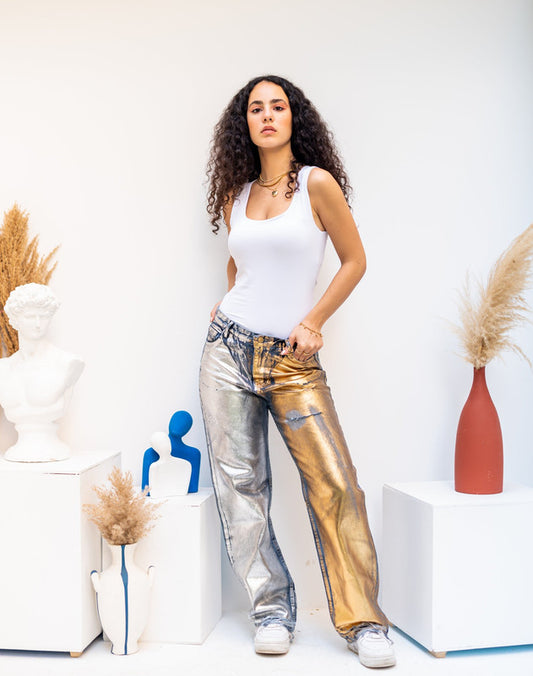 Women's Gold-Silver Metallic Denim Jeans - Shimmer Pants from Egypt