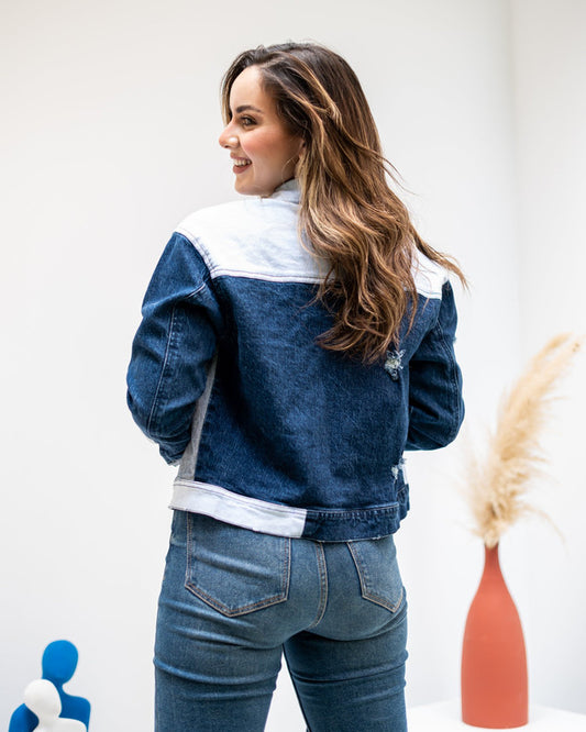 Women's Denim Patches Jacket - Stylish Embroidered Jean Coat - Trendy Casual Tops - Made in Egypt