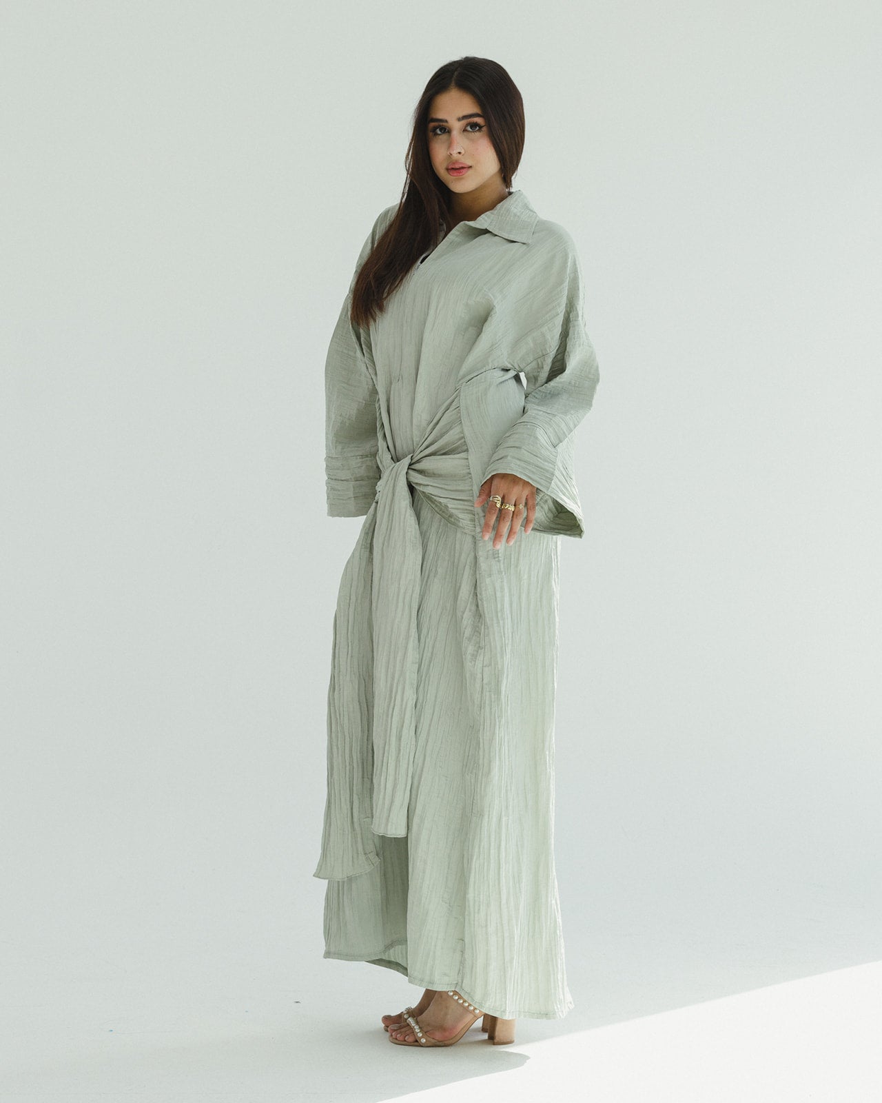 Expertly crafted from a soft, crinkled fabric, our Mint Dress offers ultimate comfort and style. The waist tie feature beautifully accentuates your figure, providing a perfect fit every time. Experience the benefits of a versatile and flattering dress that is perfect for any occasion.