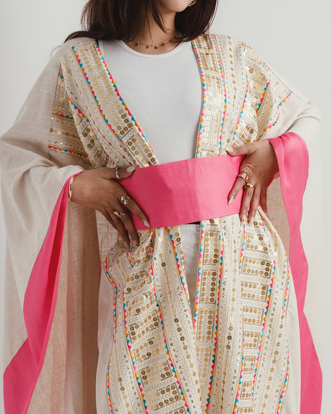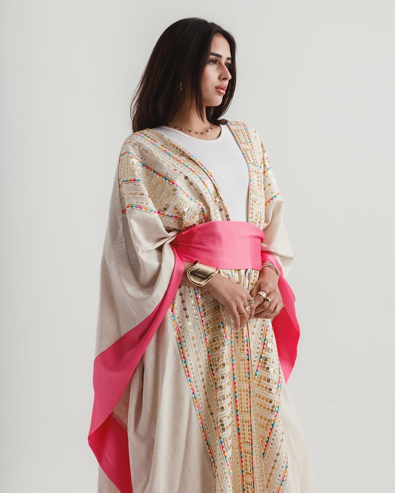 Transform your wardrobe with HAMEES_هاميس! This kaftan is a must-have for any fashion-forward individual, offering a modern twist on a classic style. With its unique design and high-quality fabric, this kaftan will elevate your look and make you stand out in any crowd. Upgrade your style game with HAMEES_هاميس.