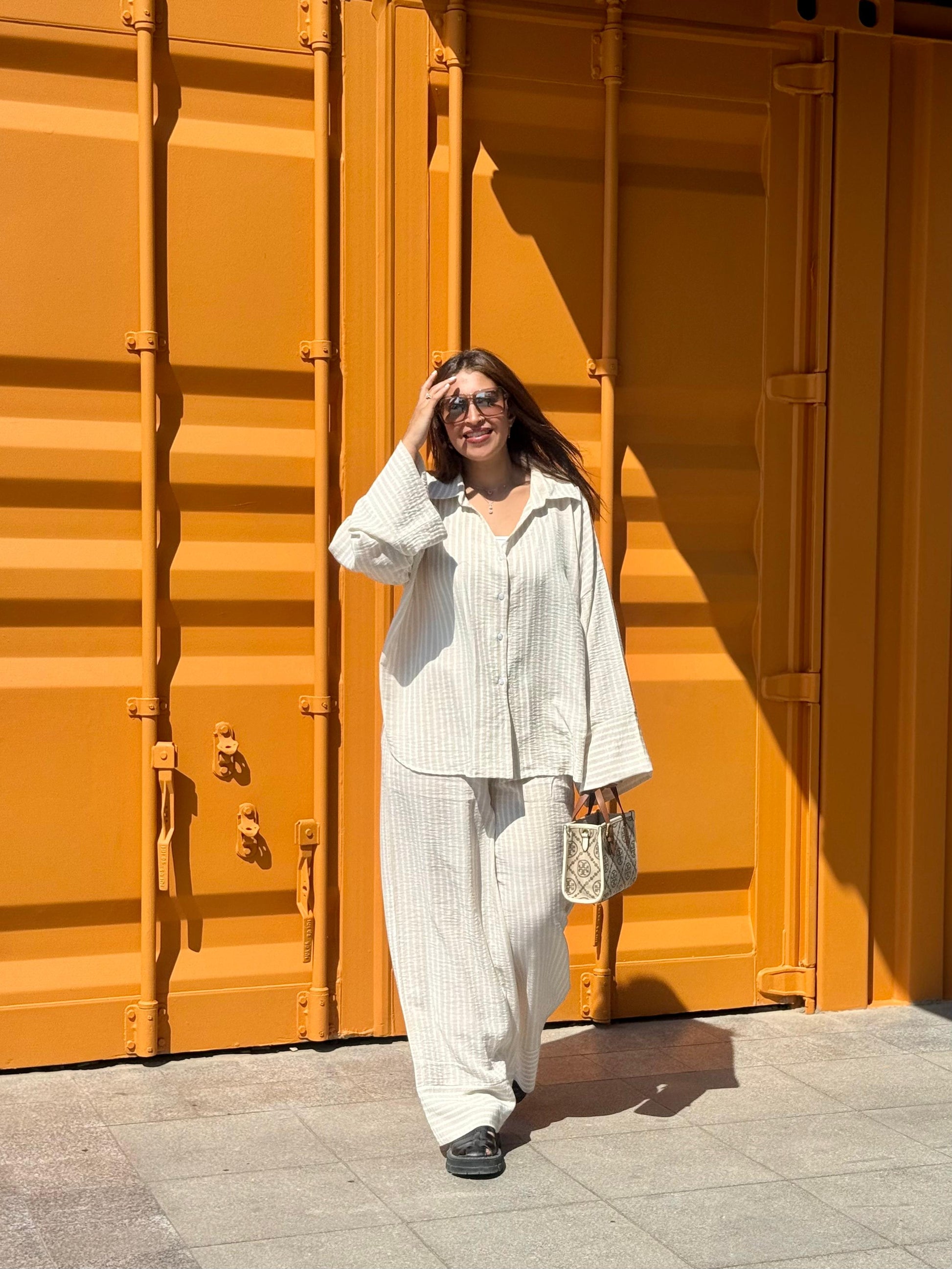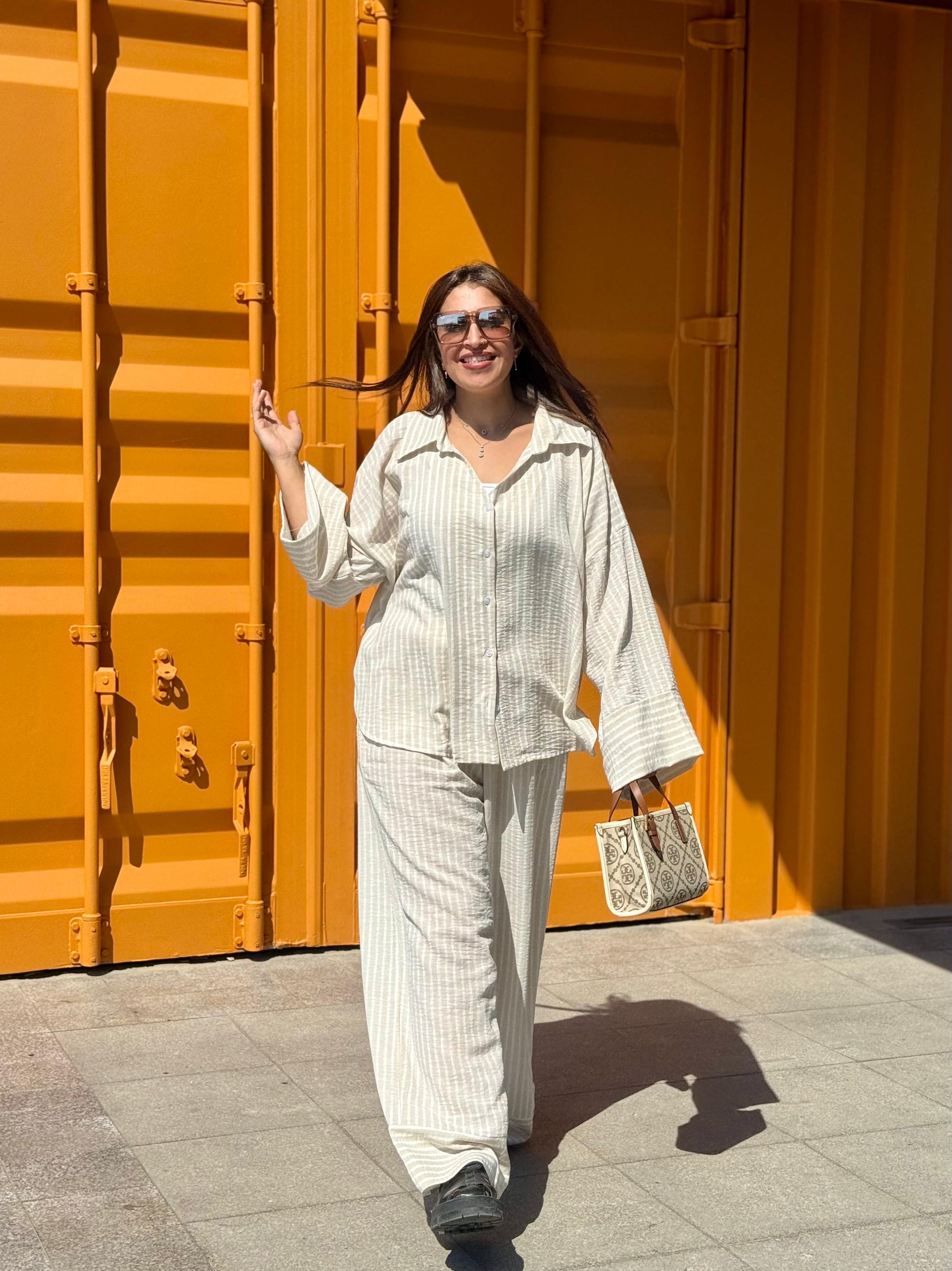 Crafted from high-quality linen, our Striped Linen Over-Size set in Blue will elevate your style game. The classic striped design adds a touch of sophistication, while the over-size fit provides maximum comfort. Perfect for any occasion, this suit is a must-have for any fashion-forward individual.
